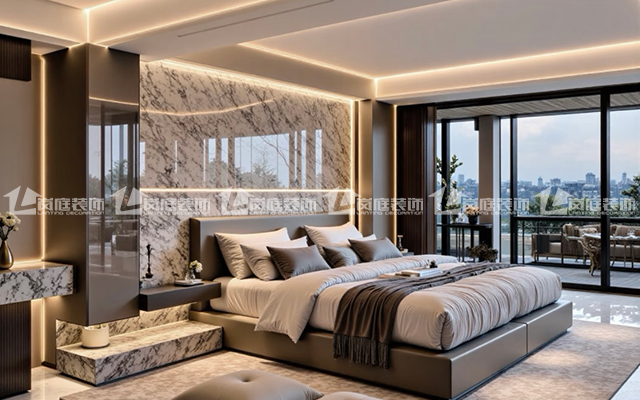 在施工过程中,大胆运用对比色点缀,极简线条和线型氛围灯搭配。